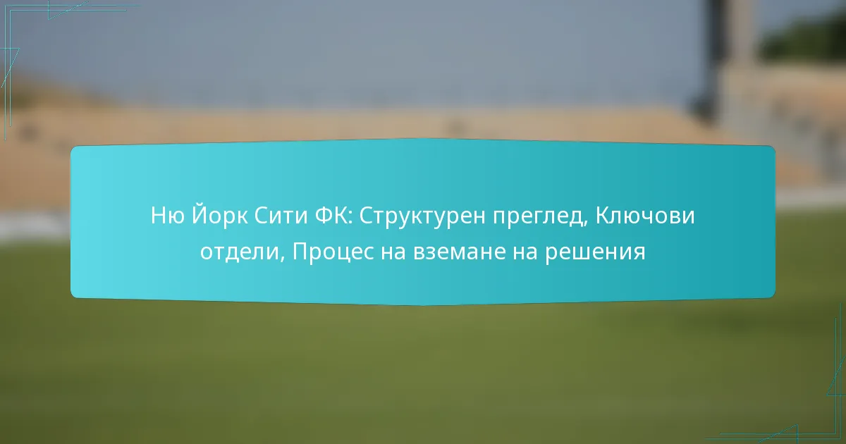 Футболен клуб Ню Йорк Сити (NYCFC) функционира в рамките на уникална структурна схема, която комбинира собственост, управление и оперативни стратегии, за да процъфтява в Мейджър Лийг Сокър (MLS). Организацията на клуба акцентира на сътрудничеството между ключови отдели като маркетинг, развитие на играчите и треньорство, които всички допринасят за успеха и ангажираността с общността. Процесът на вземане на решения в NYCFC следва структурирана йерархия, която насърчава съгласуваност с стратегическите цели чрез съвместен принос от различни заинтересовани страни.